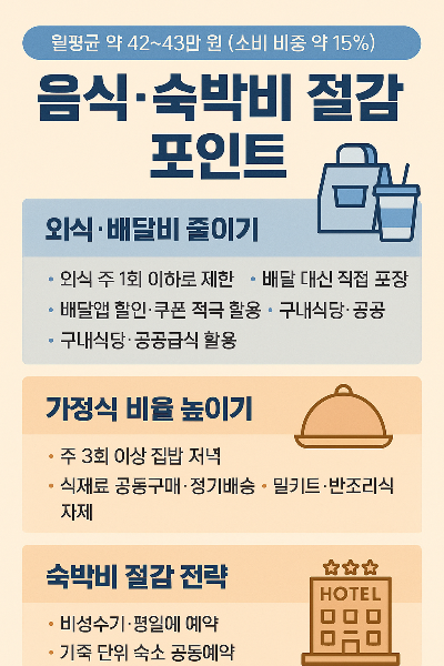 매월 통장에서 빠져나가는 돈을 보며 "도대체 어디에 이렇게 많이 썼지?"라고 고민해본 적 있으신가요? 통계청 가계동향조사에 따르면, 우리나라 일반 가정의 가장 큰 지출 항목이 바로 '음식·숙박비'라는 사실이 밝혀졌습니다. 월평균 42~43만 원, 전체 소비지출의 약 15%를 차지하는 이 항목을 어떻게 효율적으로 관리할 수 있을까요? 1. 통계로 본 우리나라 가정의 음식·숙박비 현황2024년 통계청 가계동향조사 결과를 보면, 음식·숙박비는 우리나라 가정 지출의 최대 항목으로 나타났습니다. 월평균 42만 6천 원에서 45만 5천 원 사이의 지출이 발생하며, 이는 전년 대비 약 2.1~5.1% 증가한 수치입니다. 특히 주목할 점은 이 금액이 집에서 요리하는 식료품비와는 별도라는 것입니다. 즉, 순수하게 외식..