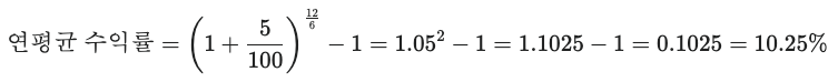 예시: 1,000만원을 투자해 6개월 만에 1,050만원이 되었다면