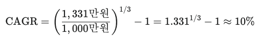 예시: 1,000만원을 투자해 3년 후 1,331만원이 되었다면