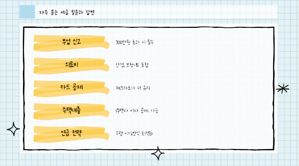세금에 관해 주변 사람들이 자주 묻는 질문들과 그에 대한 답변을 정리해보았습니다.
