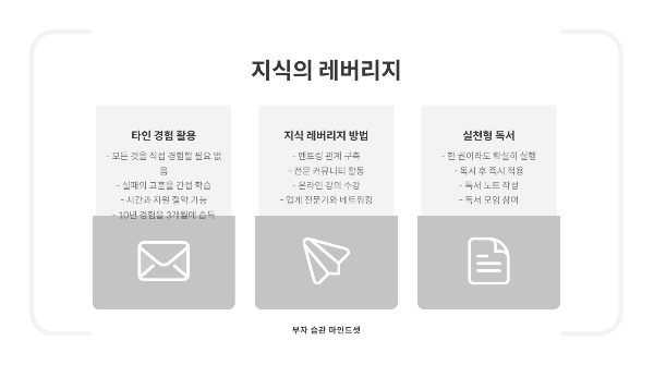 "다른 사람의 10년 경험을 3개월만에 배울 수 있다면, 그것이 바로 지식의 레버리지입니다."