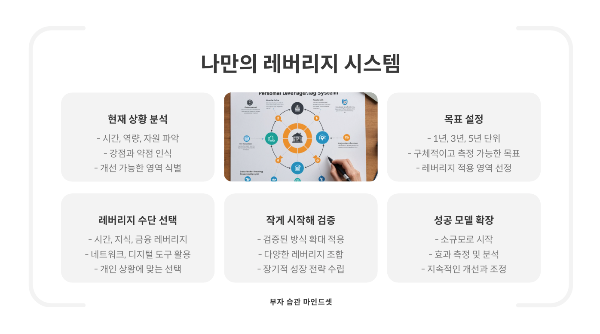 레버리지 원리는 이론보다 실천이 중요합니다. 각자의 상황과 목표에 맞는 레버리지 시스템을 구축해야 합니다.