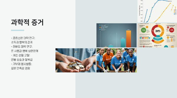 제 경험으로도 이를 확인할 수 있었습니다. 초봉 시절보다 연봉이 오른 지금, 물질적으로는 더 풍요로워졌지만 그에 비례해 행복감이 높아졌다고 느끼지는 못했습니다. 그러나 최근 정기적으로 기부를 시작하고, 주변의 어려운 이웃을 돌아보는 작은 행사에 참여하면서 이전에 느껴보지 못한 깊은 만족감을 경험하고 있습니다.