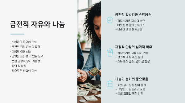 3. 금전적 걱정으로부터의 자유와 나눔의 기쁨