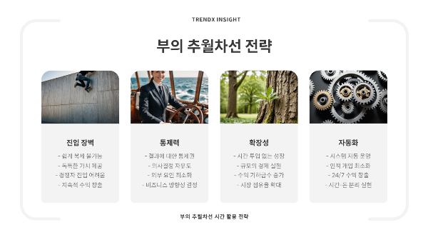 부의 추월차선의 핵심 개념 중 하나는 '레버리지'입니다. 같은 시간을 투자해도 더 큰 결과를 만들어낼 수 있는 방법을 찾는 것이죠. 예를 들면: