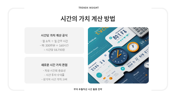 예를 들어, 월 300만원을 벌기 위해 주 40시간(월 약 160시간)을 일한다면, 여러분의 시간당 가치는 약 18,750원입니다. 그런데 여기서 중요한 질문이 생깁니다. 여러분은 자신의 자유 시간을 1시간에 18,750원에 팔겠습니까? 휴일에 누군가 "오늘 하루 8시간 일하면 15만원 줄게"라고 제안한다면 기꺼이 수락하시겠습니까?