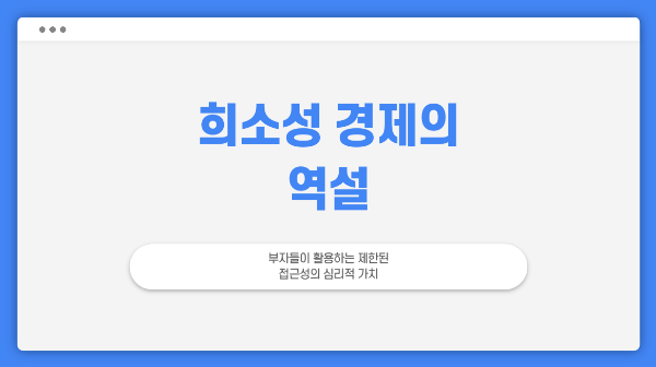 희소성 경제는 단순한 수요와 공급의 문제를 넘어 인간의 심리, 사회적 지위, 마케팅 전략이 복합적으로 얽힌 현상입니다. 부자들은 오랫동안 희소성의 원리를 활용해 자신들의 재화와 서비스의 가치를 높여왔습니다.